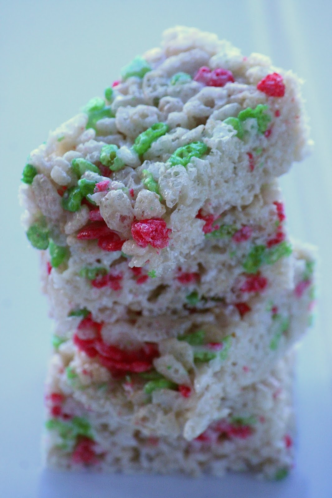 I'm pretty pleased with myself for perfecting this recipe. Turns out, it's a lot harder making the classic Rice Krispie treat than you'd think. Previous versions were too wet and thus sogged the cereal, or the sugar re-crystallized and the whole thing fell apart. But these! These have the perfect blend of crispness, sweetness, and chewiness that defines this childhood classic. These freeze and thaw very well should you need to make them ahead for a holiday party.