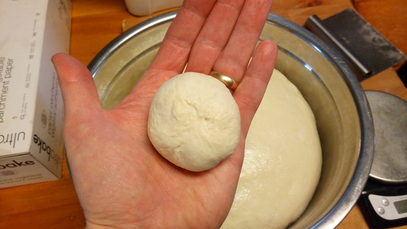 6. Shape into a ball, place in a lightly oiled bowl, cover, and let rise for 60 mins.