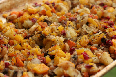I am actually on the ball this year and posting a Thanksgiving recipe a full week before Thanksgiving! Yes, Canadian Thanksgiving is October 10. So for you American readers I am really on the ball. This recipe is a slight variation on the Winter Pies I posted a while back. If you are pressed for time you could make these pies like the winter pies (i.e. like a tasty Hot Pocket) rather than going through all the fuss of making mini pies. Also, you can probably get 12 pies out of this recipe buy adding another two cups total of veggies, but I have given you some wiggle room with the pastry dough. The two things that make these superior to the Winter Pies are the roasted cranberries (awesome!) and the roasted squash (equally awesome!). The crust, as always, remains my favourite. It is easy to work with and durable, yet still flaky and tender. Don't worry if the top crust does not totally bond with the bottom--we enjoyed taking off the tops, pouring in some gravy, and putting the tops back on.