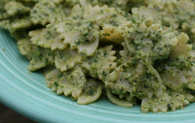 The first two recipes come from the recent issue of Vegetarian Times. I've never really looked at VT before, but when the kids came home selling magazine subscriptions as a school fundraiser I decided to give it a whirl (it was the only veggie option in the whole lot). First up: broccoli pesto. Amazing! The mint gives it a little bite and the hazelnuts are a nice change from walnuts.