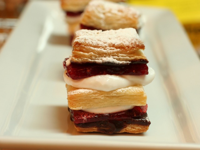 So this is a take on the classic French dessert and is perfect for when you are throwing a dinner party and want to impress your guests with the amazing world of vegan pastry. It also helps if your guests are not worried about their daily caloric intake. In this version I make a strawberry gel with agar, but you could use some quality jam instead. Fresh berries would also be awesome, too, but since it is the dead of winter I don't have access to any (save the ones from California in the un-recycleable plastic clamshell). On the other hand, the gel helps give it a nice layered look and keeps the final dessert from getting too messy. The trick here is not to go overboard on the creme, and to make sure that all the components have cooled so the creme does not melt. You will have some left over (and some gel) but there are worse things that could happen to you.INGREDIENTS